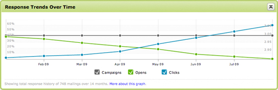 Now in the response section of Broadsword’s eznews accounts, you’ll find Interactive Charts, displaying all of the useful email results in a handy, visual way. You’ll know at a glance how your campaigns perform over time. You’ll see individual results unfold over hourly increments. And best of all, these new charts make it easy to spot trends and patterns in your email strategy.